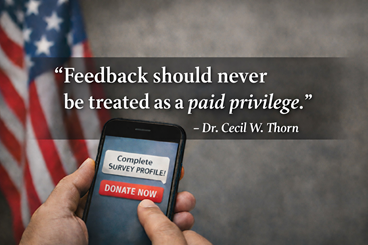 A survey, by definition, is meant to gather honest feedback. When access to participation is restricted—either directly or indirectly—by requiring a financial contribution, the purpose of that survey is fundamentally compromised.